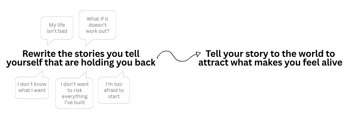 1:1 Coaching For people who want focused, personal support. We work together over time to identify your stories, rewrite the ones holding you back, and create a clear path toward what you actually want.
