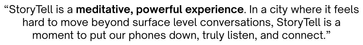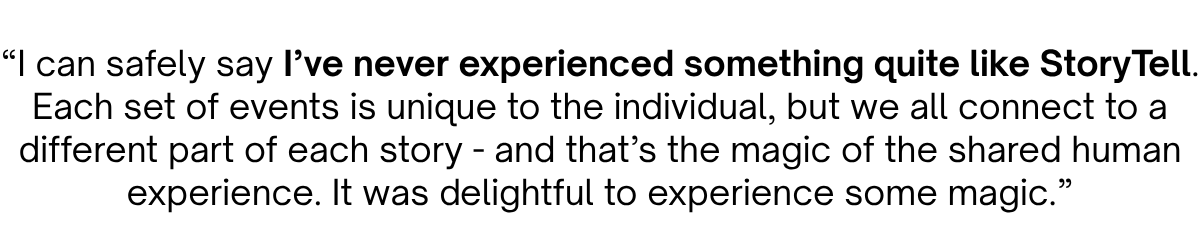 In February 2023, I founded StoryTell, a community fostering empathy, belonging, and connection through personal storytelling.