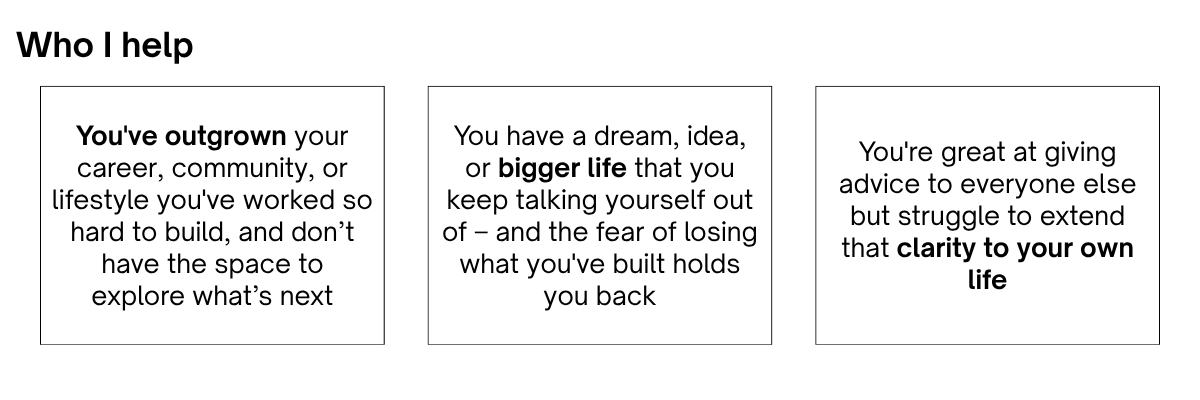1:1 Coaching For people who want focused, personal support. We work together over time to identify your stories, rewrite the ones holding you back, and create a clear path toward what you actually want.