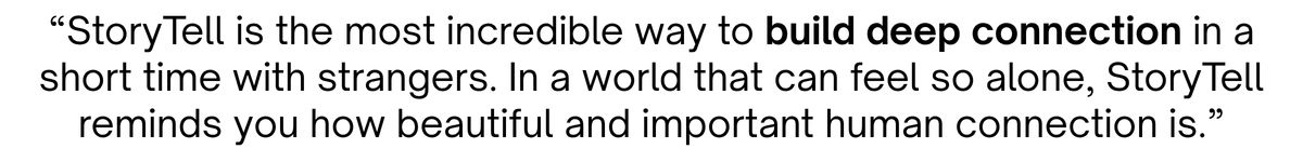 In February 2023, I founded StoryTell, a community fostering empathy, belonging, and connection through personal storytelling.